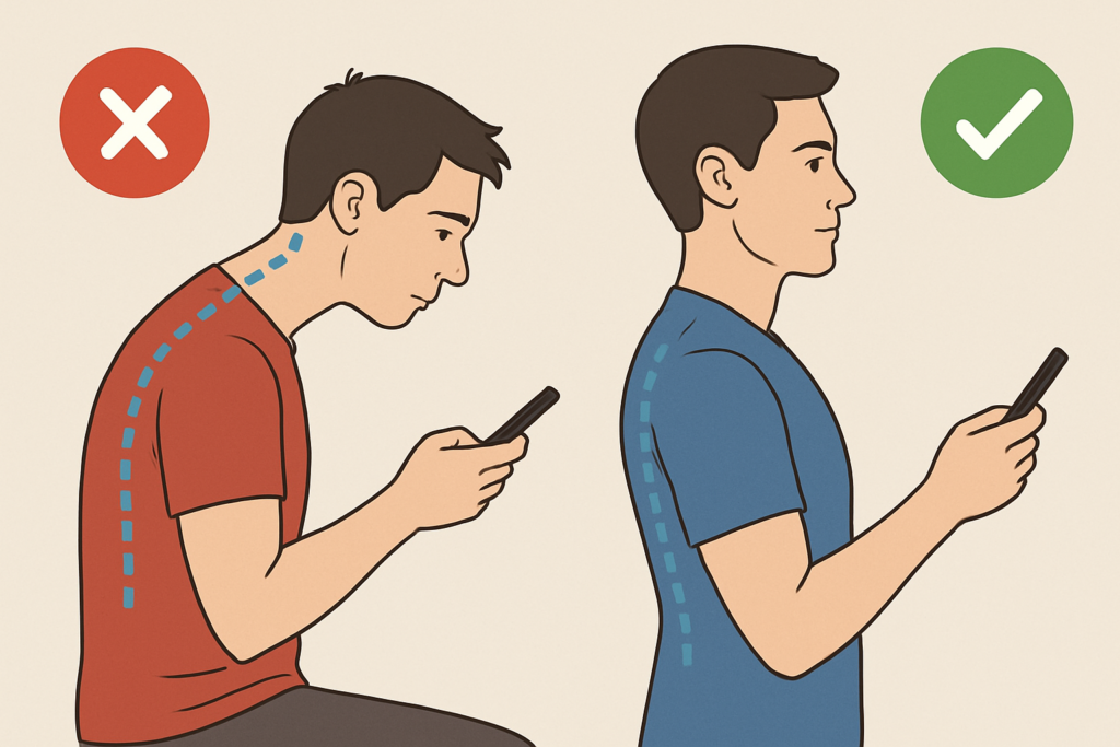 스마트폰에 몰입하면 대개 목을 앞으로 빼고 어깨를 웅크리는 자세를 취하게 됩니다. 이처럼 머리가 앞으로 튀어나오는 자세(Forward Head Posture)는 목 주변 근육을 과도하게 긴장시키고, 이 긴장은 아래턱을 지지하는 저작근으로 전이됩니다.